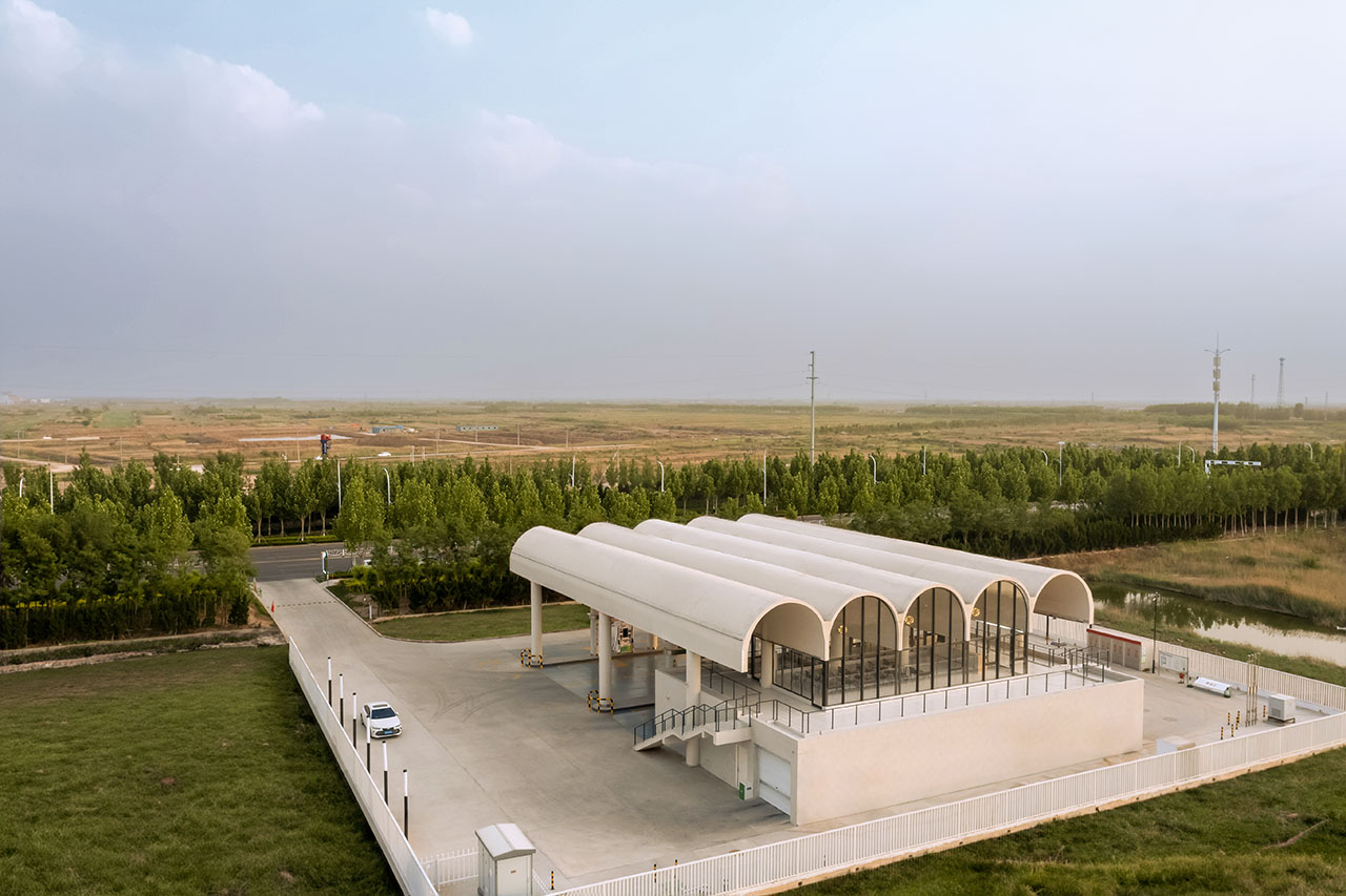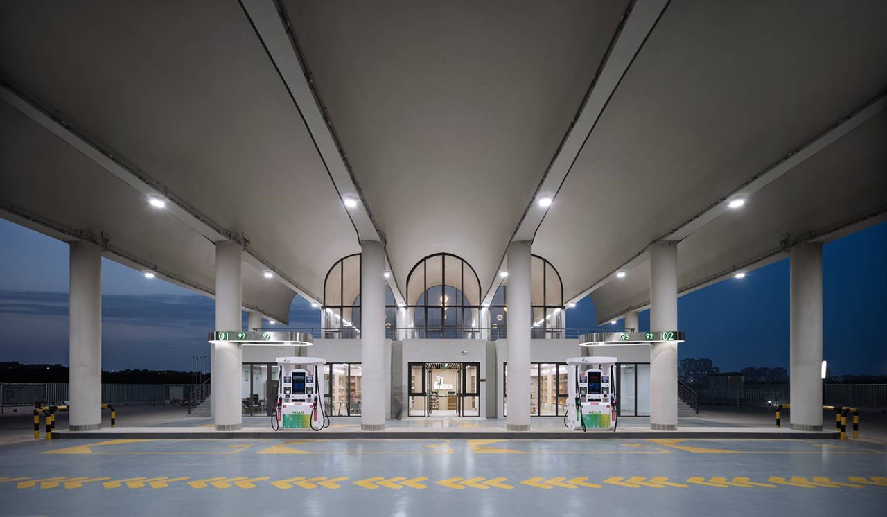 连续筒拱的设计也使得加油站可以模块化复制,筒拱的数量和长度都可以根据加油站规模而增减。