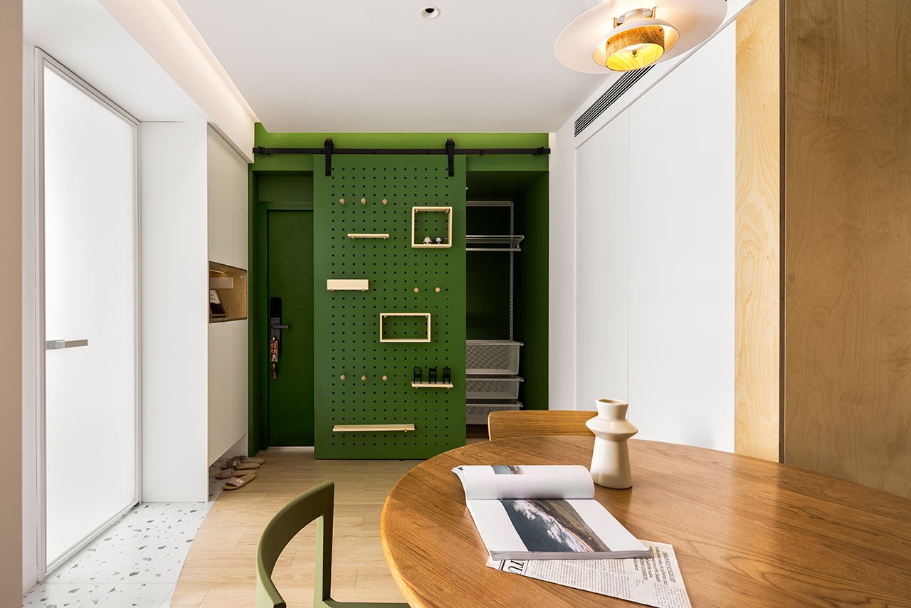 绿色洞洞板,不仅增添了一抹清新的色彩,更是创意收纳的小天地。钥匙、帽子、围巾,每一件日常小物都有了属于自己的位置。