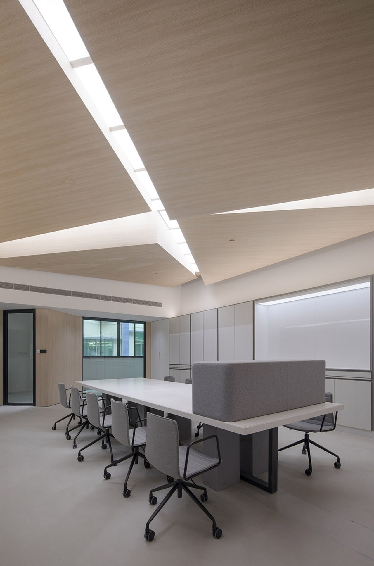 大堂采用网格矩阵式的天花板,柔和的光线漫射而下,营造出宁静而优雅的氛围。空间内的选材素简,包括温暖的木、冷静的水泥石膏板和金属,在开放的工作环境中创造亲密和舒适的体验。Desfa试图创建一个安全友好的工作环境,从而增强团队的合作精神、彰显品牌的价值和美感。
