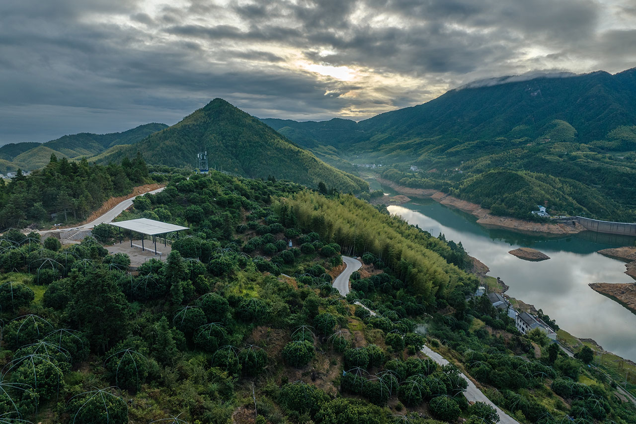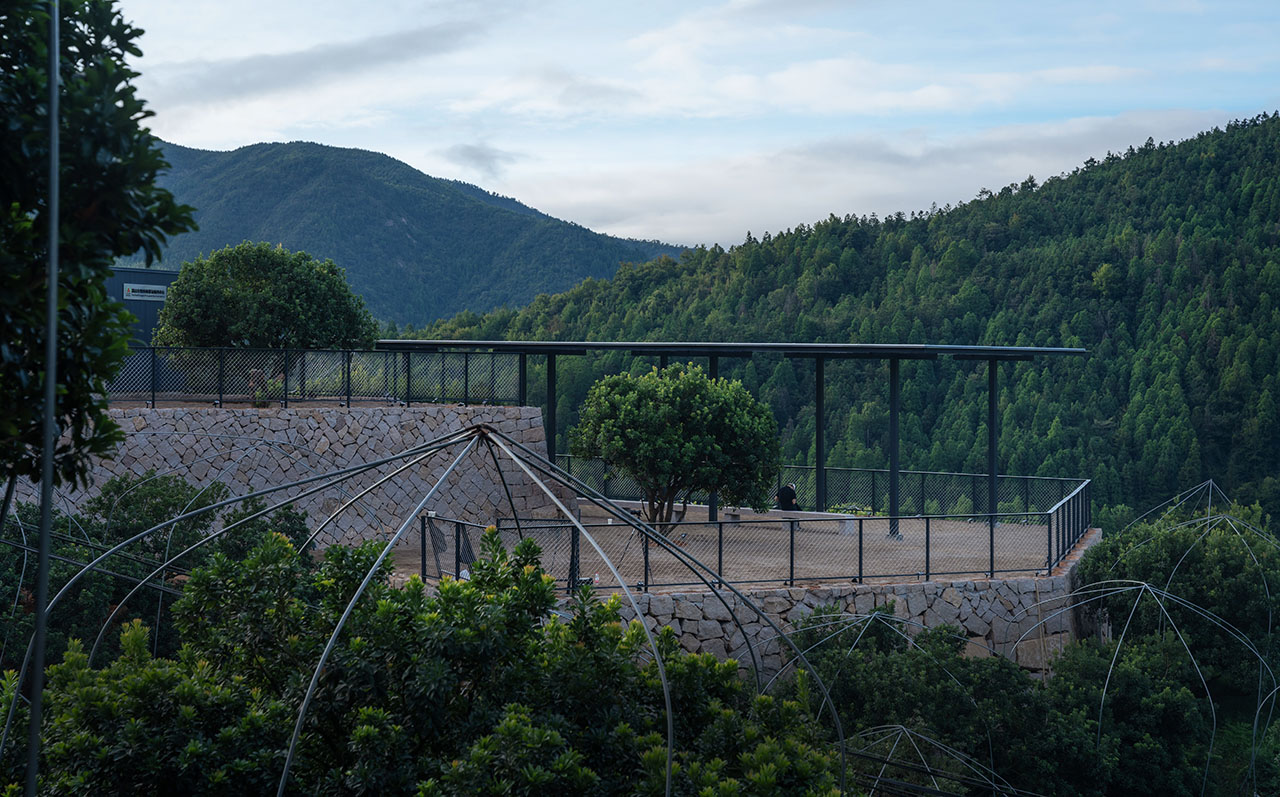 沿蓝田东魁杨梅精品园区道路盘旋而上,因山取势,选择三处景观视野开阔且能避开杨梅树的空地。建筑选型从低到高有序展开叙事,因山势筑基,立亭台楼阁,利用当代建筑语言,表达传统自然山水意境。