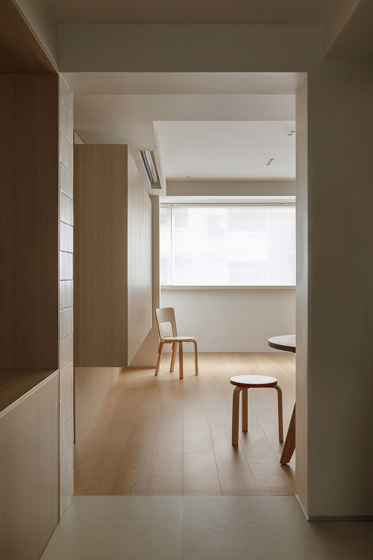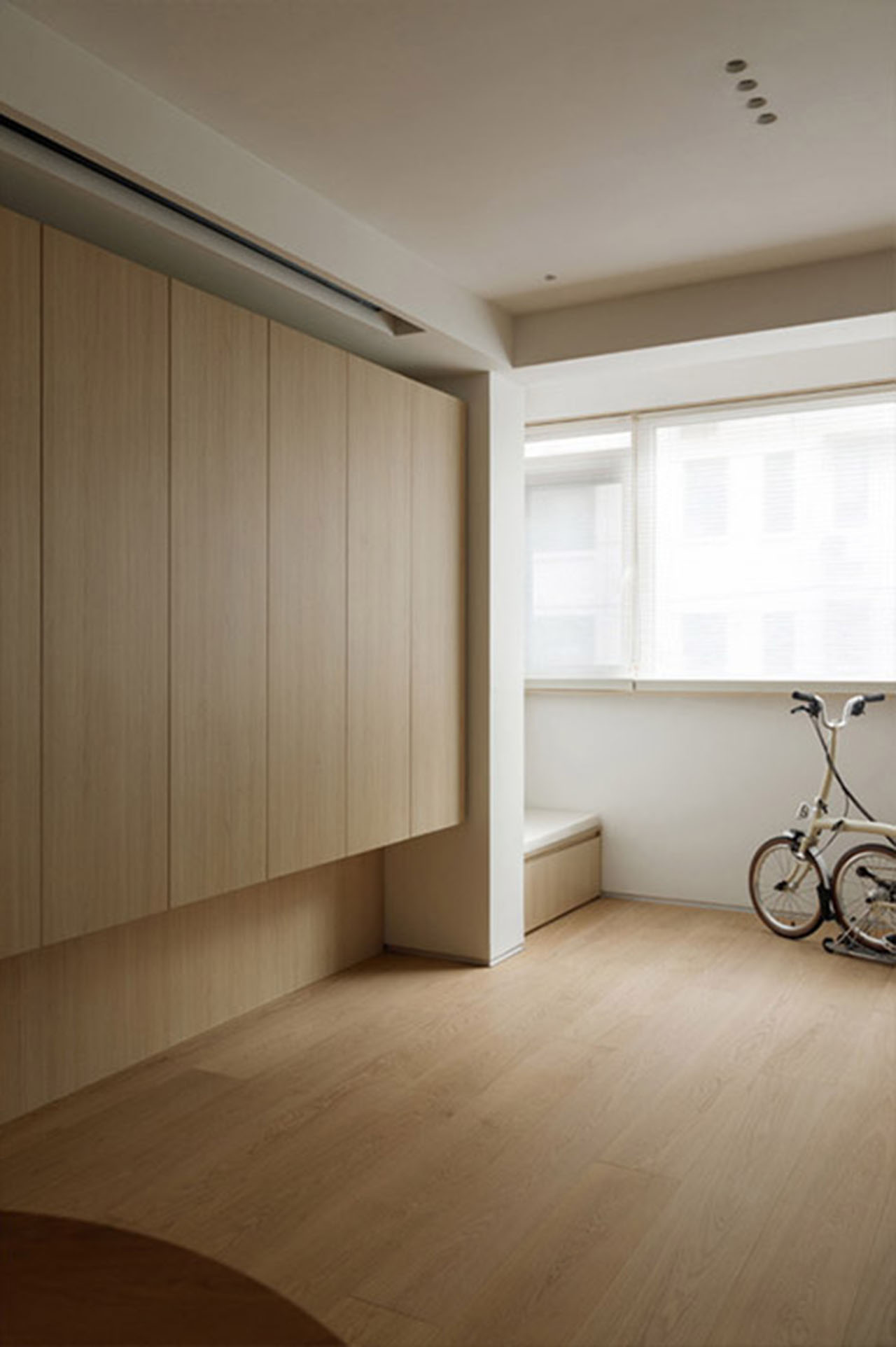 卧室承载着睡眠和储物功能,更改了床头朝向,化解了原本通道狭窄,视线拥堵的不便,并将视线终点移动到吸收光线的框景窗户上,让视线更具延续性。