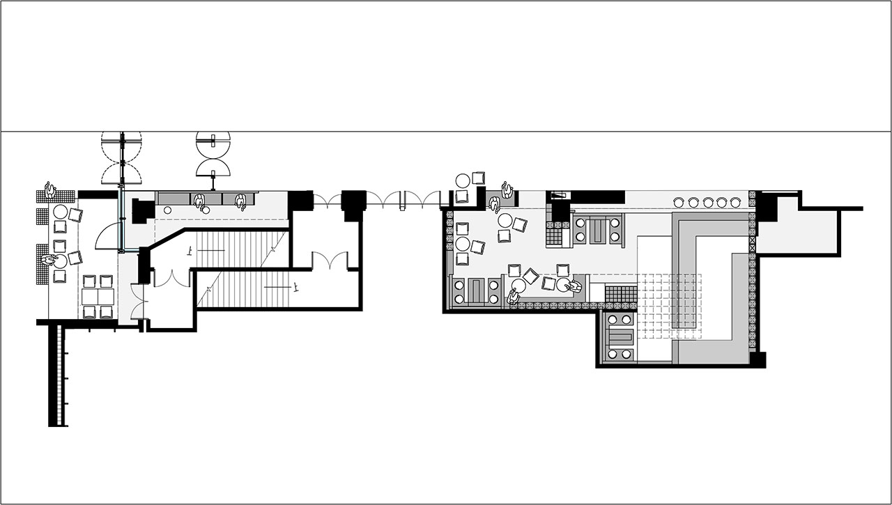 品茶区,我们采用“内建筑”的形式,将古人“茶寮”进行现代化的形式处理,为不同的社交场景提供休闲品鉴区,不论三五好友,还是两人对饮,亦或是临时停驻,分设了卡座区,单人座区,吧台卡座区,满足日常经营场景使用。