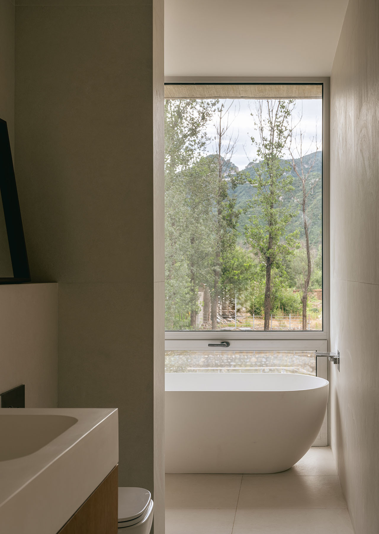 从初到场地开始,某种十分迫近的东西就在我们体内起作用。直到二层露台上,从东北方向升起一段混凝土墙体,形成两座实体之外的另一座尽端——观星台,共同去援引山体和天空,接收某种降临。