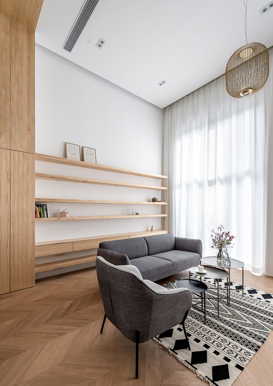 二娃之家需要一个共享开放的活动空间,设计使用了几何语言,融合木色,为孩子呈现一个童趣的生活世界。