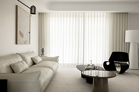 主卧南侧阳台地面被抬高,形成下沉式浴缸,带独立的更衣、淋浴。与主卧、衣帽间、卫生间联系组合成洄游环线。