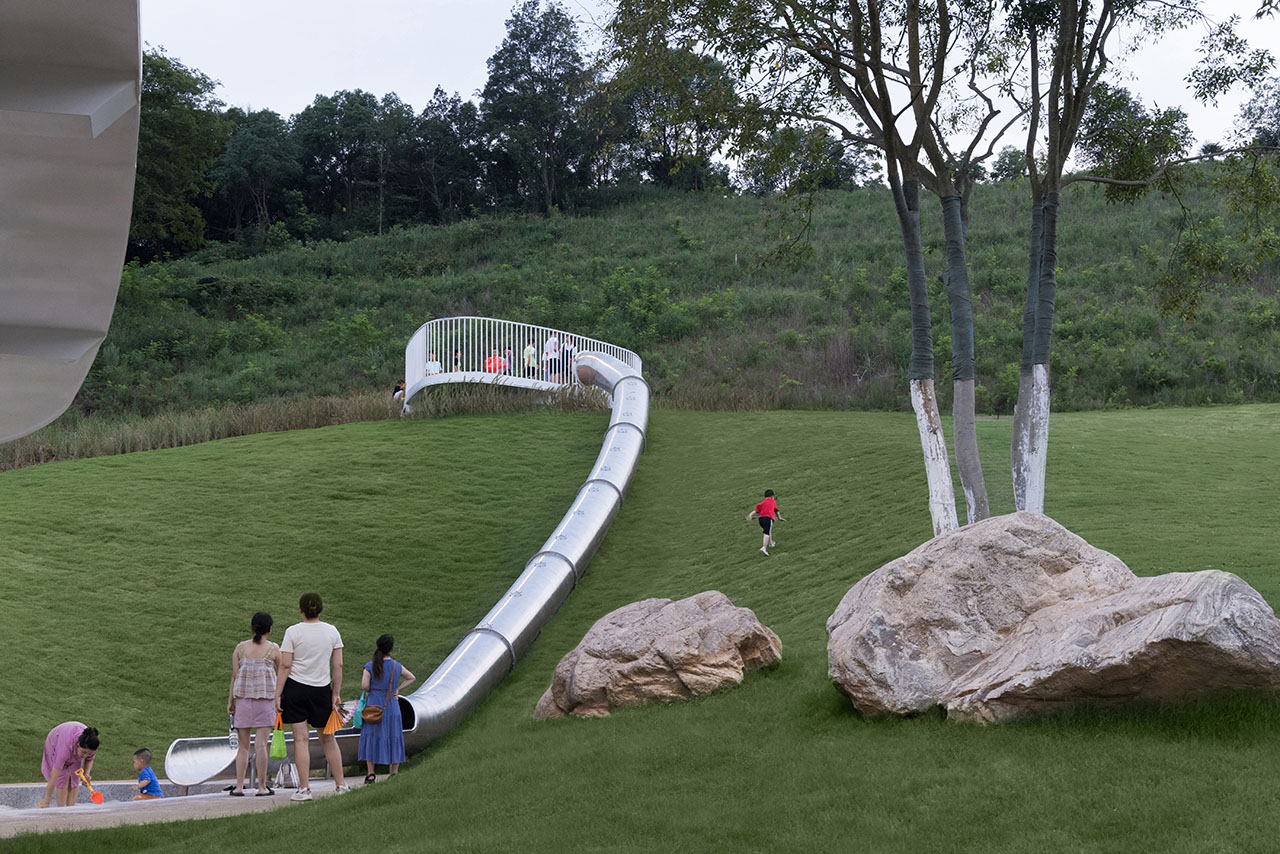 在这样一处场地构建儿童游乐公园,我们梳理出三条设计原则: