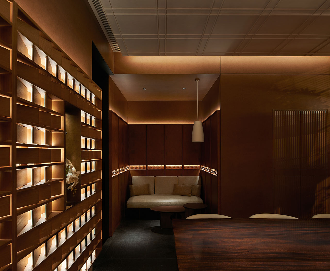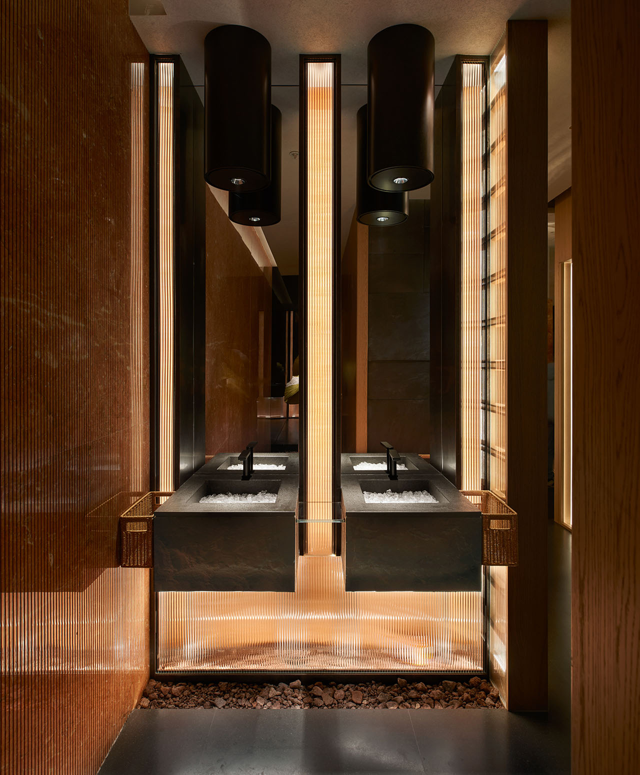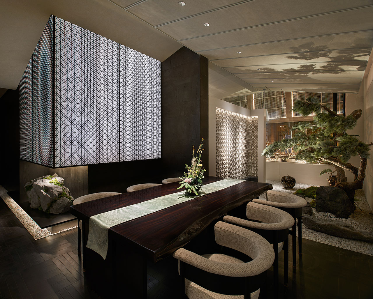 我们将日料餐厅“杉木SUGIKI”打造成城中之外、远离人烟的山林世界,食客在“林水泉石”之间感受东方美学的独特语境。