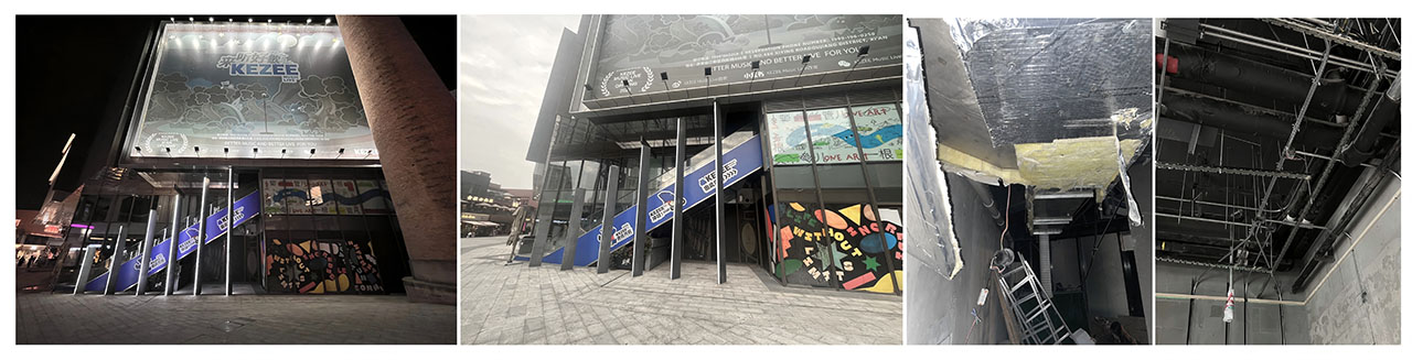 通过与量子晨街区物业的协商,允许设计团队对扶梯下方的区域加以使用。在拆除了原本扶梯下方的建筑玻璃幕墙后,扶梯下方增加的室外区域与室内构成了一个纵向空间场域,受到场地带来的启发,使我们萌生了在空间中置入一个方盒子的想法。