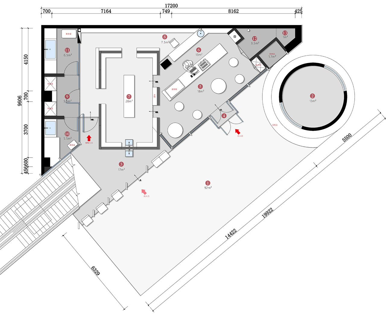 建筑面积:室内96㎡、户外142㎡