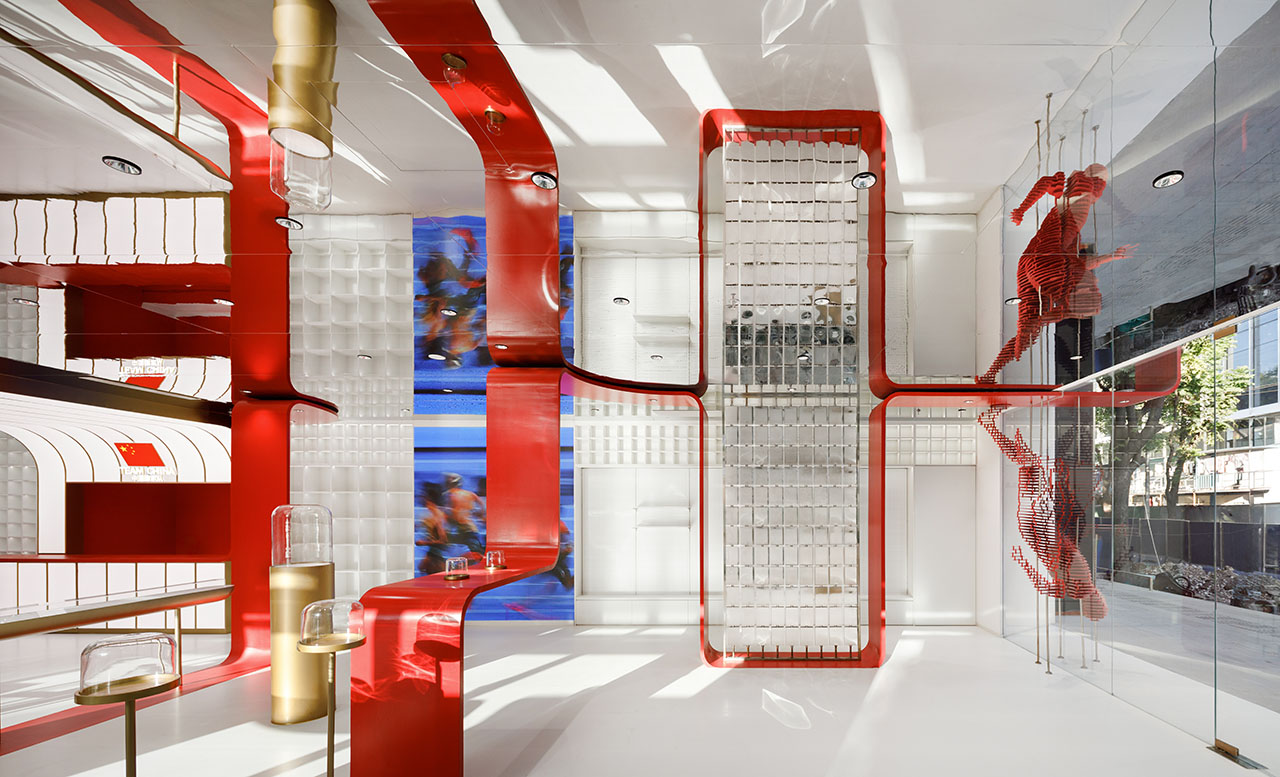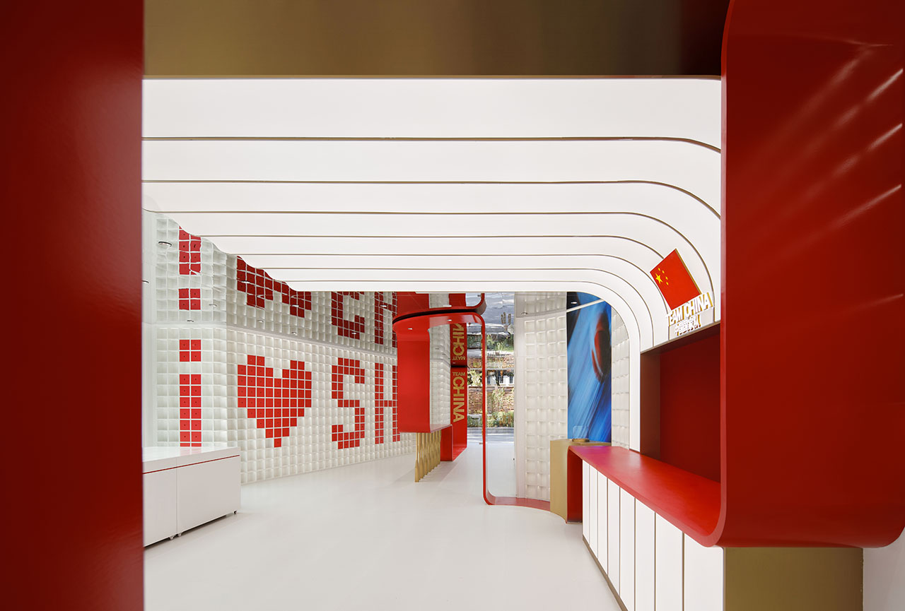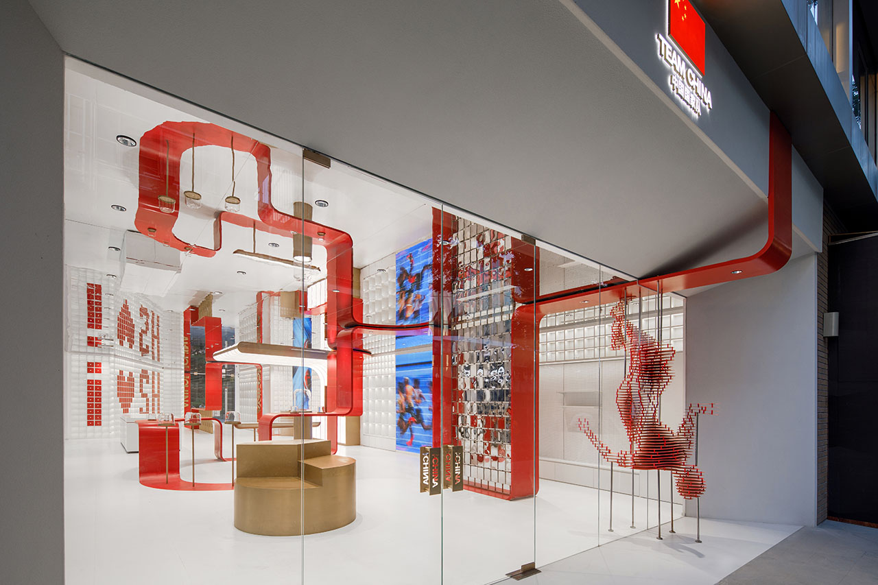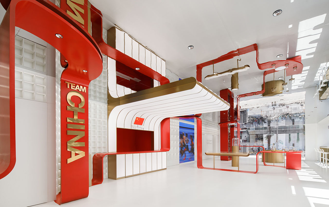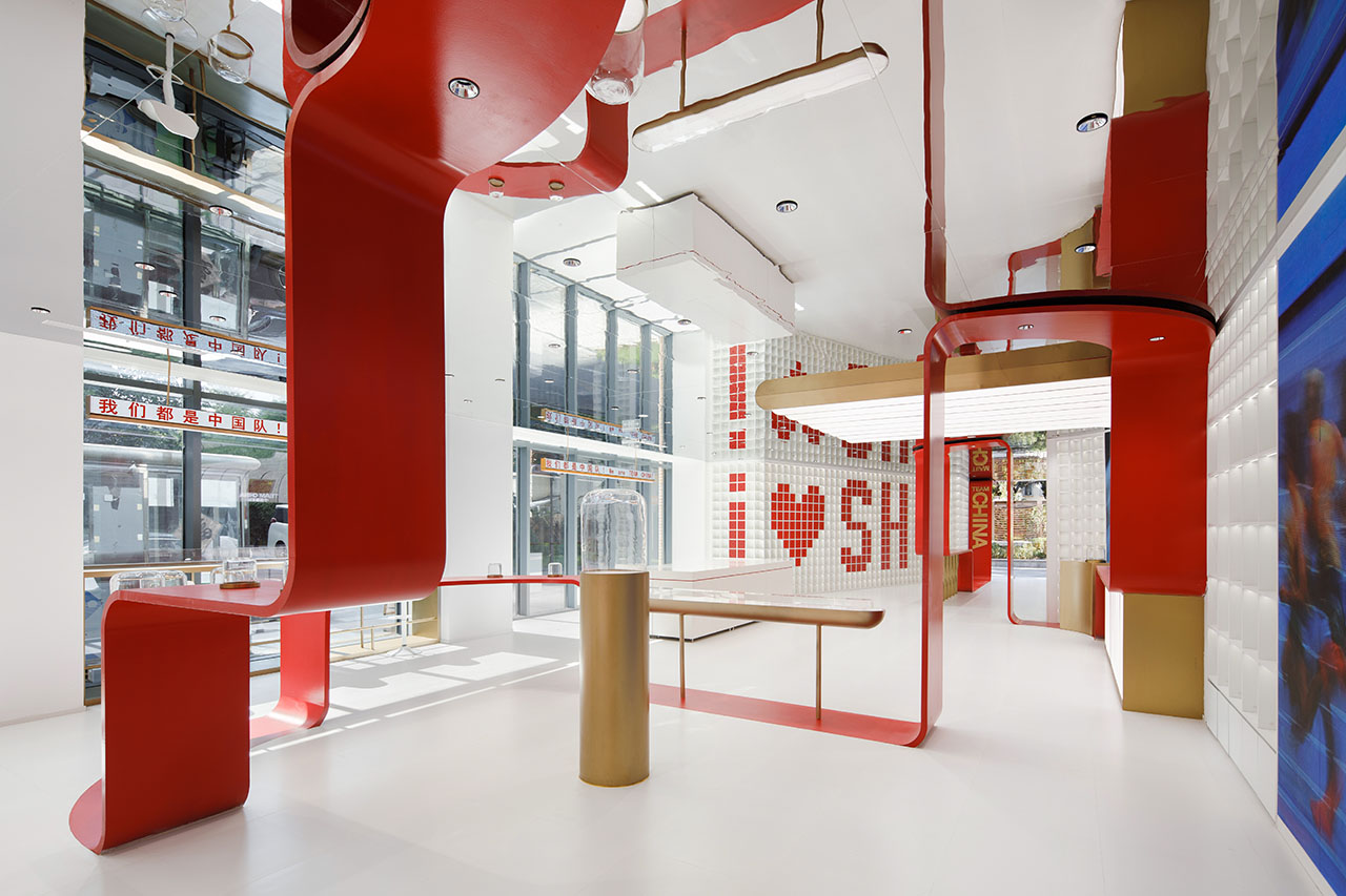 TEAMCHINA上海旗舰店以一条红色能量带连接品牌和城市,为上海永源路注入鲜活的体育文化能量。