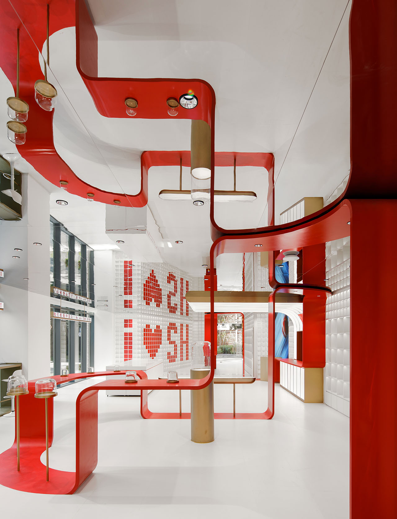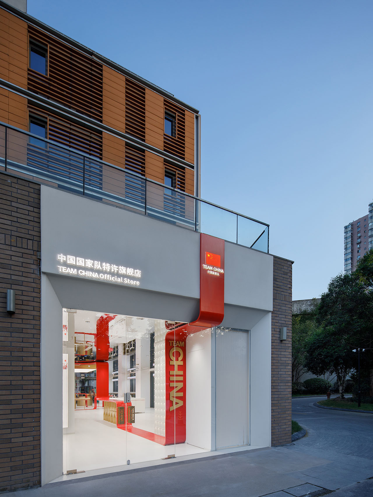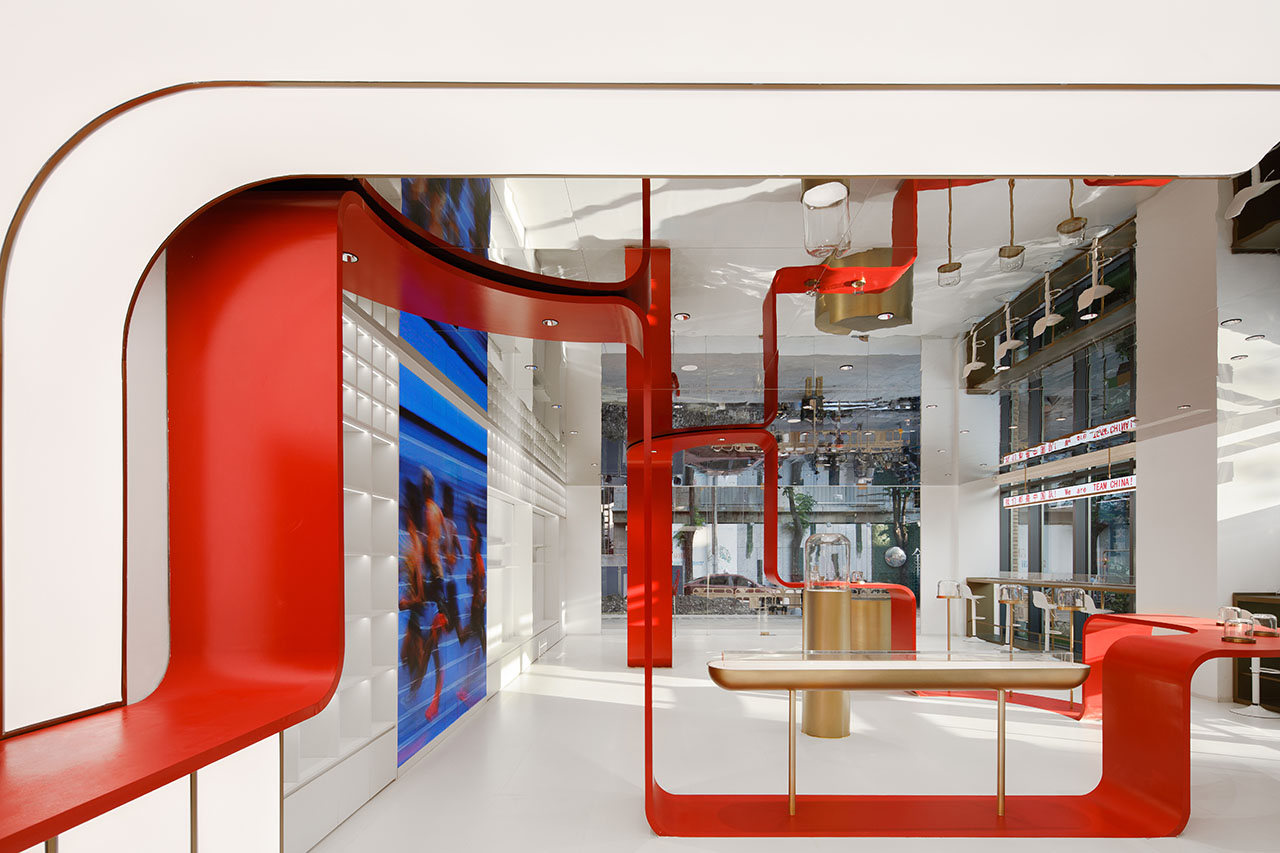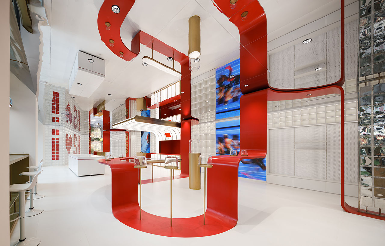 TEAMCHINA上海旗舰店以一条红色能量带连接品牌和城市,为上海永源路注入鲜活的体育文化能量。