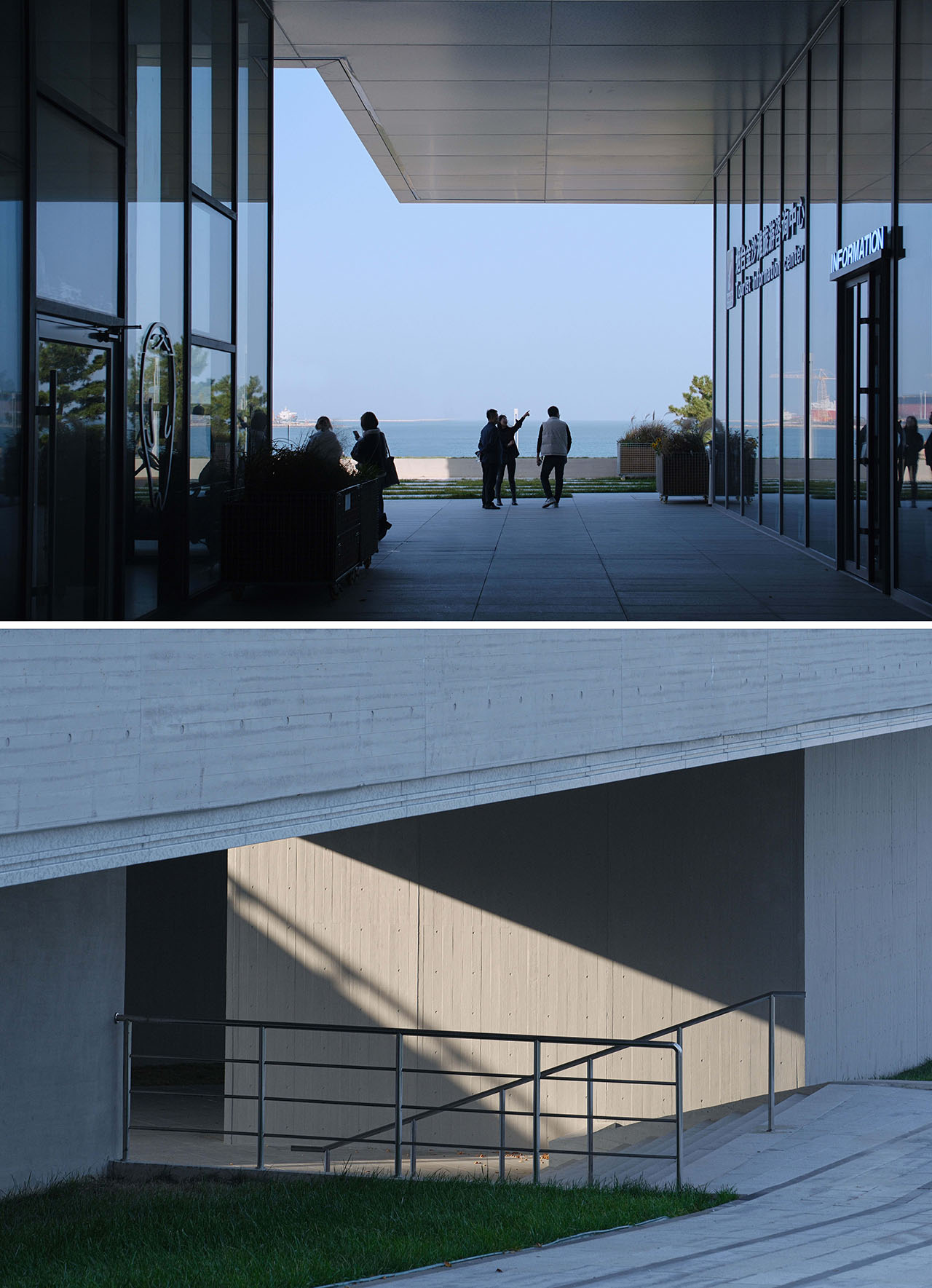 从标识性的空间,到山、海、城市、空间的语言探讨,再到平实的几何建造,面对烟台与这片海,咨询中心在用丰富的空间语言与极低调的空间状态,回应着本地市民的日常需求。