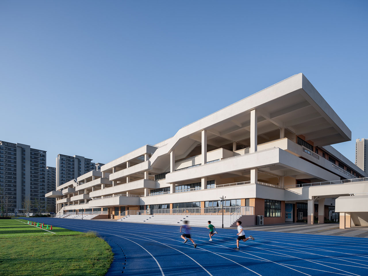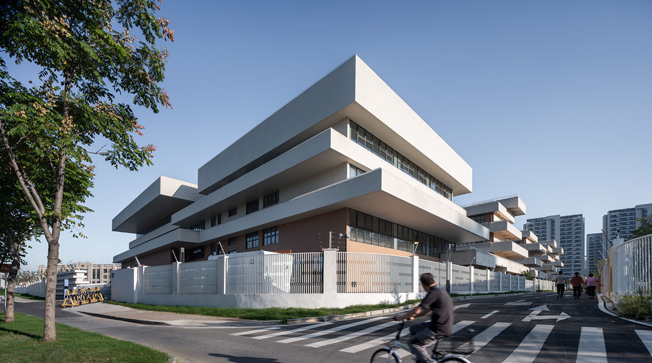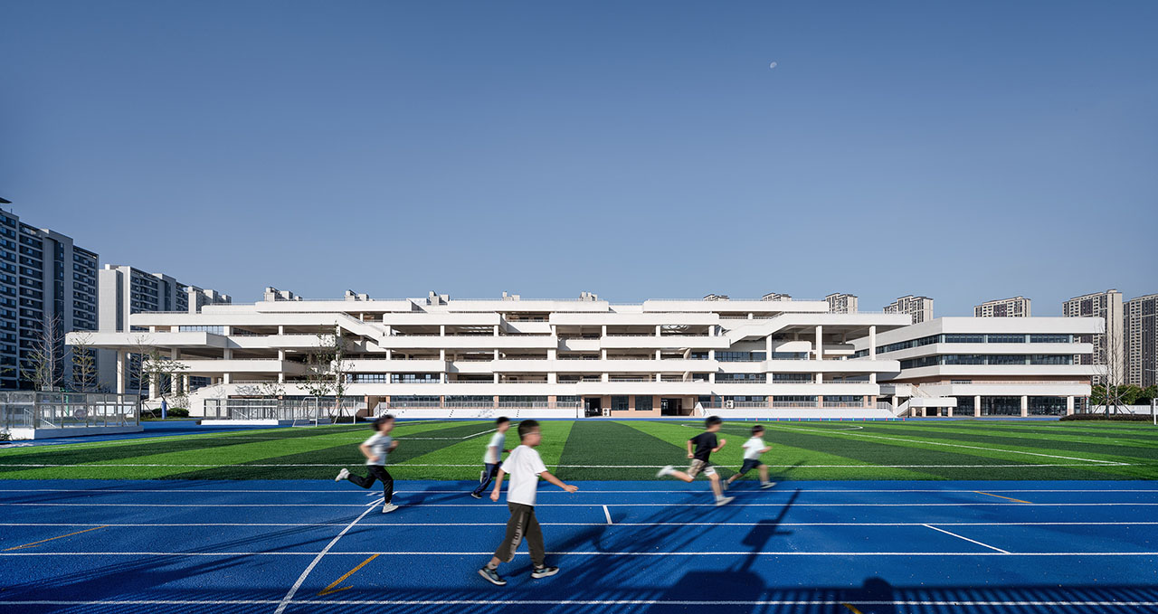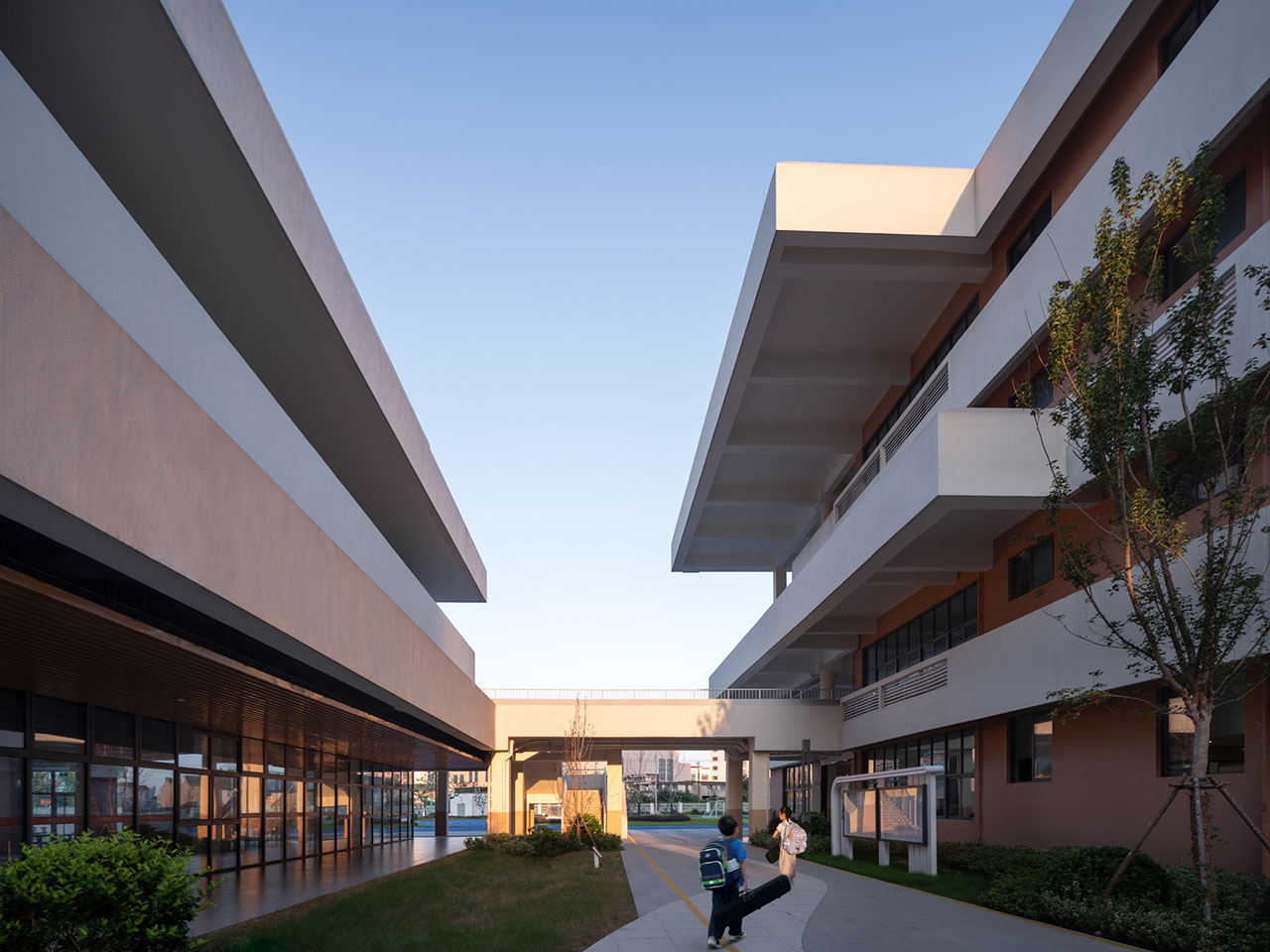学校占地面积约3.7万平方米,设计规模为60个班,可以容纳2700名学生。用地规则,周边是新建城区,设计的开始就是寻找一个合适的叙事语境,为建筑赋予深层次的意义。这种意义与建筑师的个人经验相关,也与建筑师对于城市、地域、环境的认知相关。