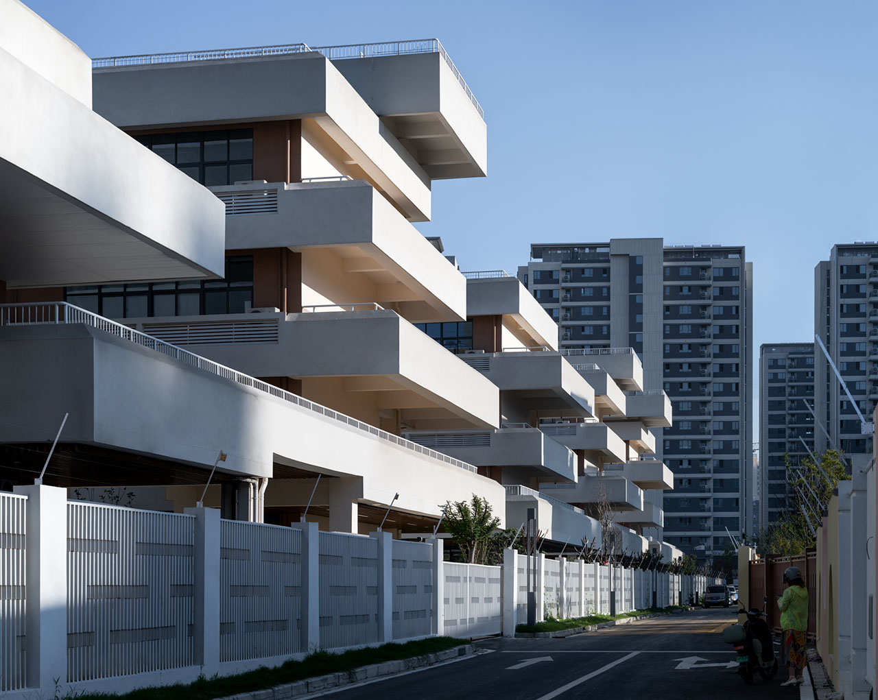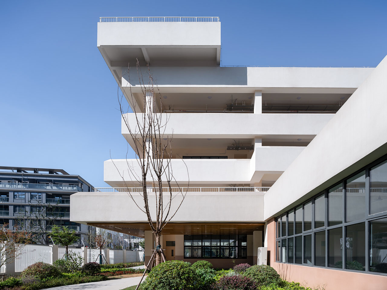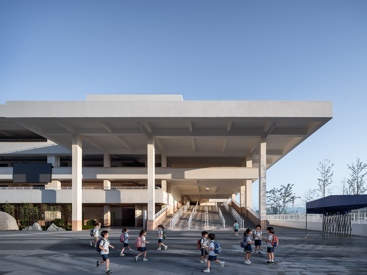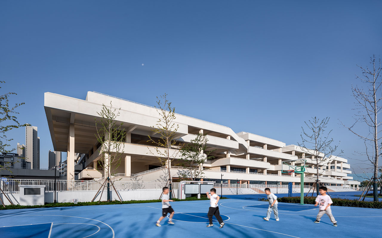 学校占地面积约3.7万平方米,设计规模为60个班,可以容纳2700名学生。用地规则,周边是新建城区,设计的开始就是寻找一个合适的叙事语境,为建筑赋予深层次的意义。这种意义与建筑师的个人经验相关,也与建筑师对于城市、地域、环境的认知相关。