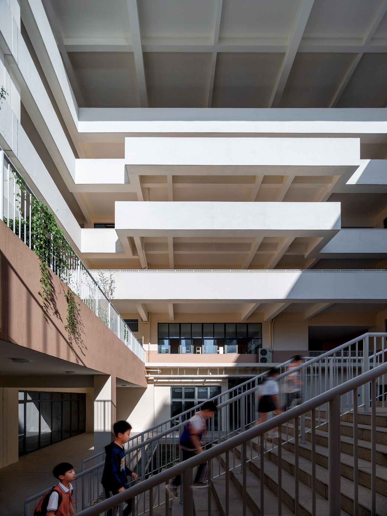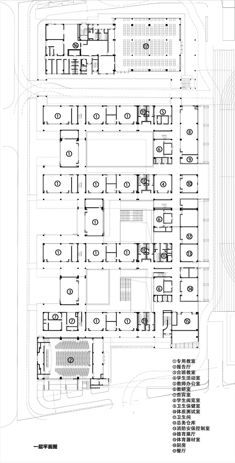 这种基于严谨秩序下面的丰富变化,是解决高密度校园建筑性格塑造的重要途径。在高效率功能需求的先决条件下,利用有限的空间实现最丰富的变化,才能够在功能性和精神性之间搭建一座相融的路径。