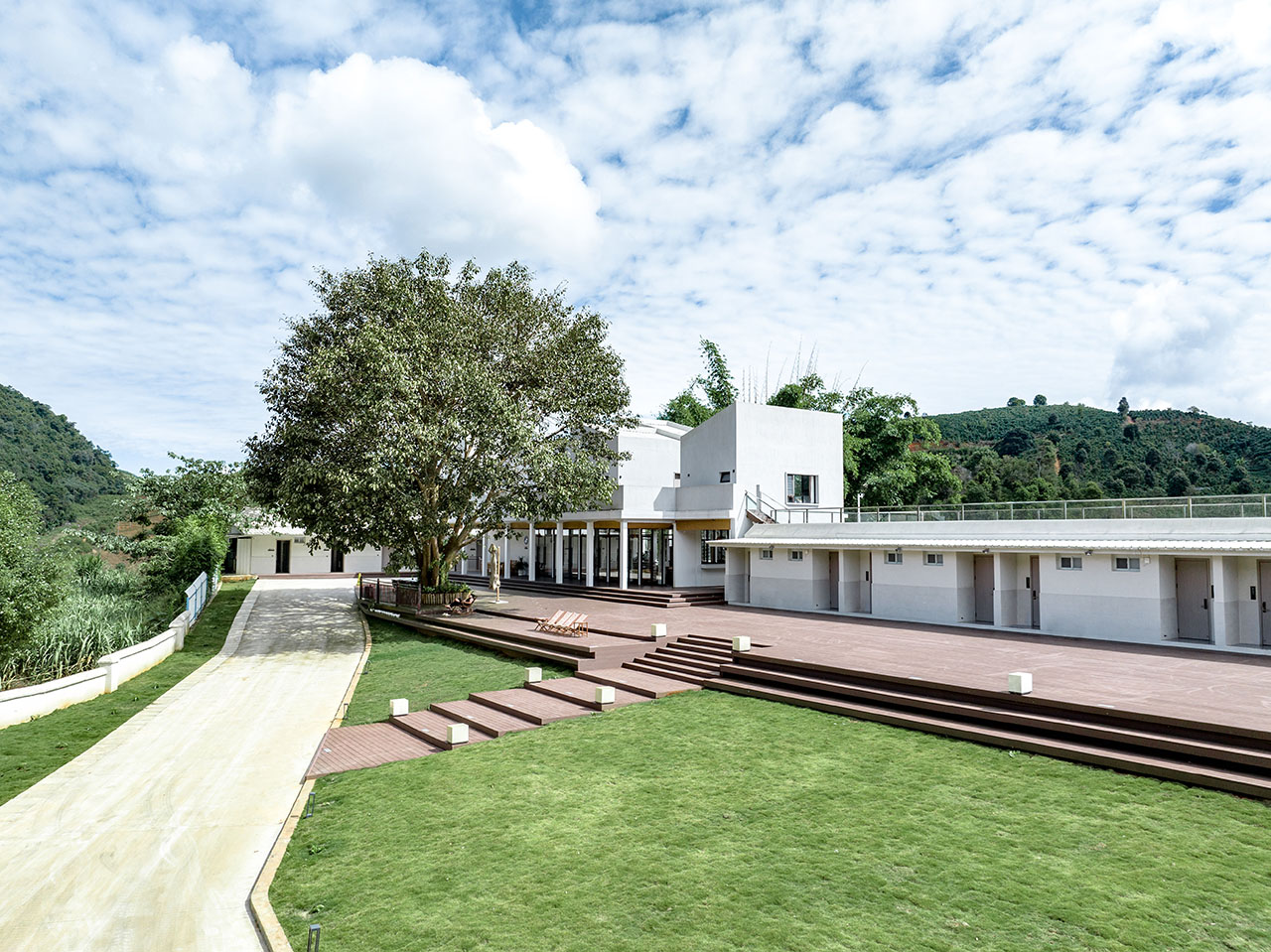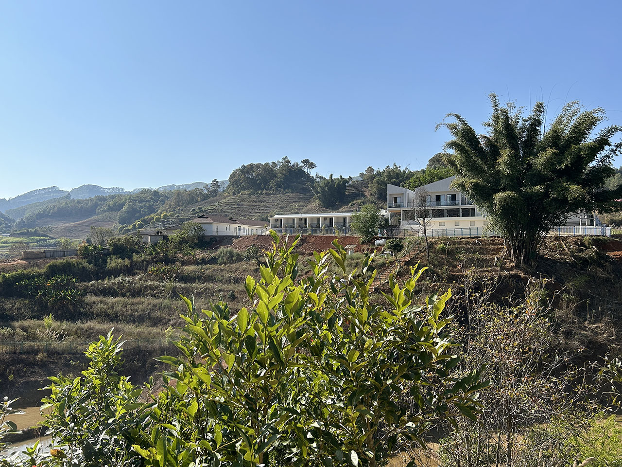 项目位于云南省普洱市澜沧拉祜族自治县,依托于当地咖啡产业产、学、研的乡村振兴计划的支持下,通过对原有闲置的小学场地进行环境改造与新建,联合乡村笔记缔造的乡村特色产业基地配套设施。项目继承原有小学空间中“学”与“憩”的功能,协调梳理场地内外优良的自然环境,希望在日后开展的咖啡研学中,这个场所能成为研学活动容纳住宿,休闲,趣味活动一体的配套基地,成为乡村活力的新节点。