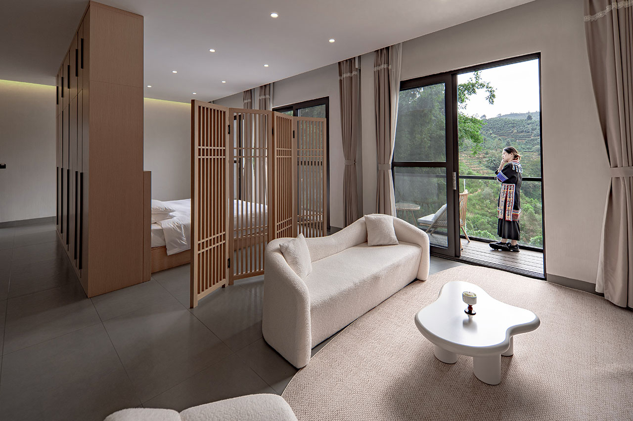 咖啡客厅作为乡村笔记后期运营咖啡研学活动的场所,我们同时将整体小学内原有的教室与宿舍进行改加建设计,提供完备的住宿条件,配合咖啡客厅的民宿空间形成四人间、标间、套房的多样化休憩空间。