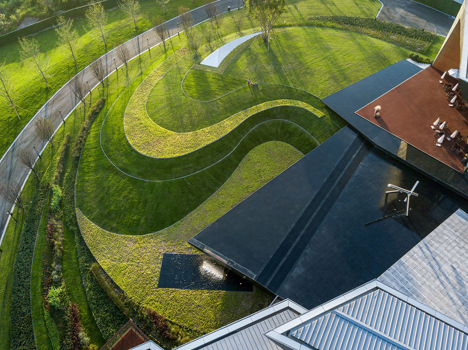 巨大的镜面水池倒映天光、自然与建筑,人工与自然在这里和谐相处。