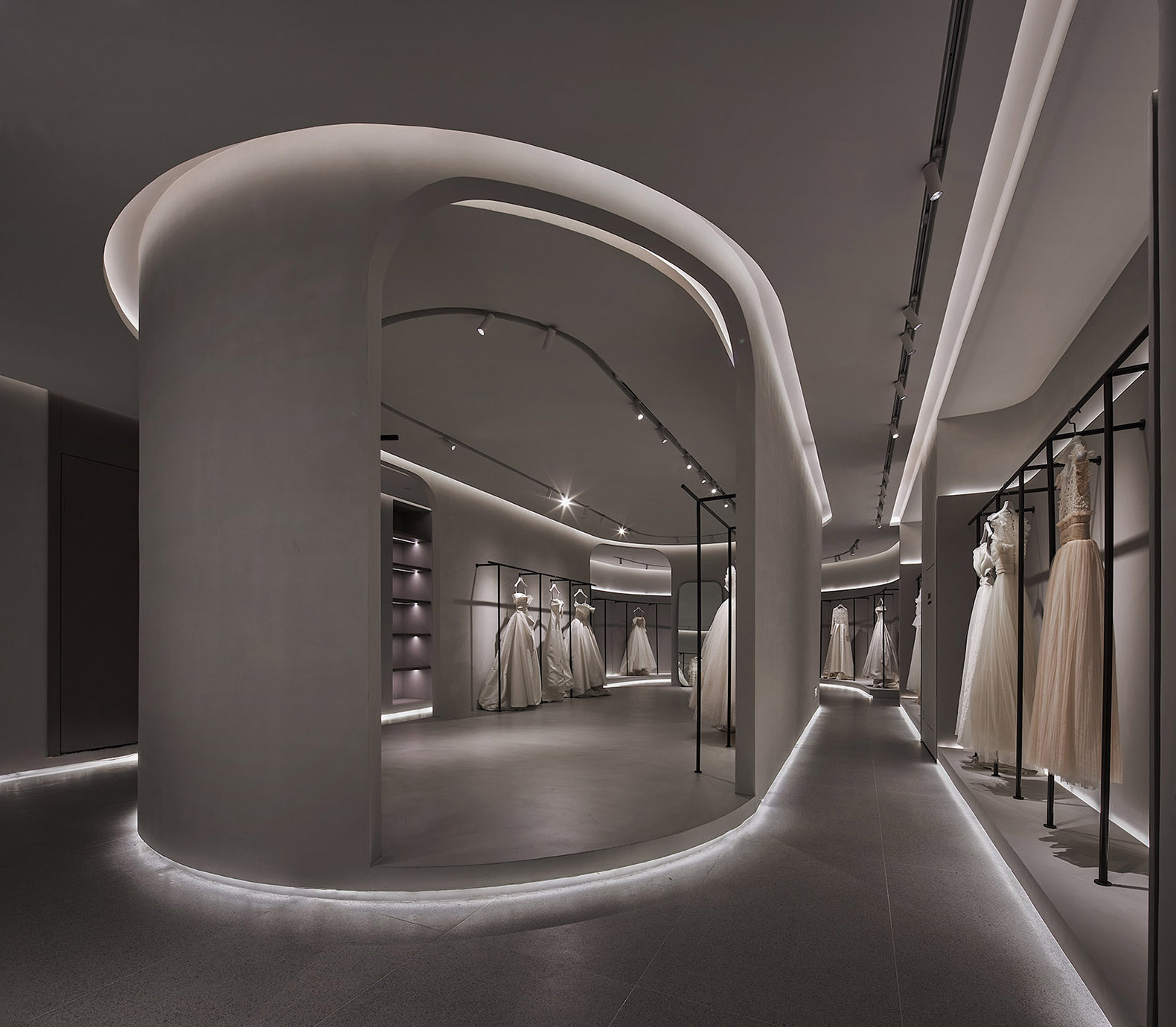 整层是由我们的原创手作饰品间、婚纱礼服陈列区、艺术装裱展示区、高级定制男装馆、全独立专属造型间、商业级影棚以及办公区域构成,从而打造极具颠覆性的经营理念与空间环境。几个敞开式区域采用了连接性的设计,而沉浸式体验的拍摄服装区更像是一间自由穿行的美学时装馆。婚纱礼服、中式嫁衣按系列划分陈列于各自的区域,都是为特别的你而准备的。