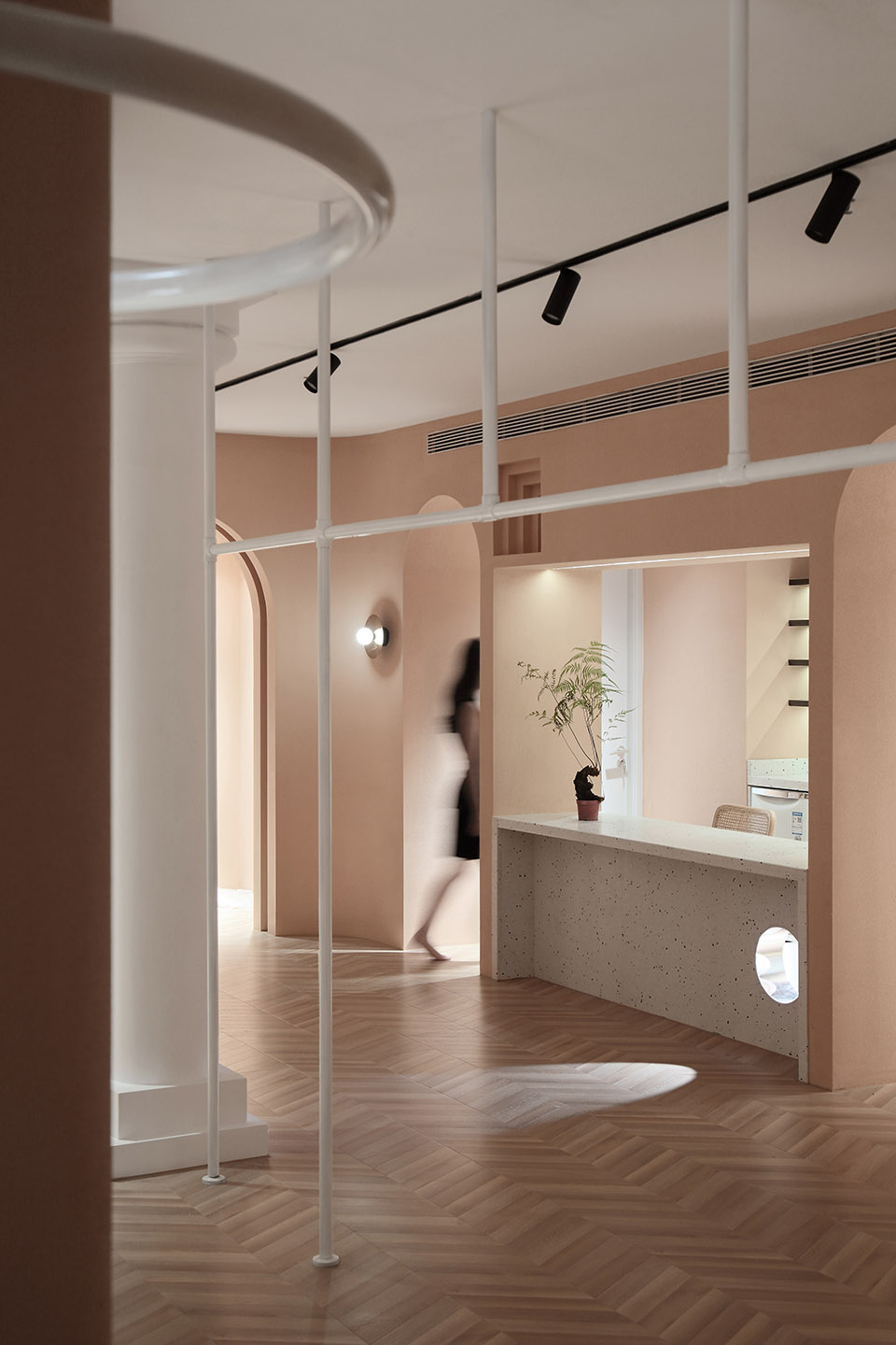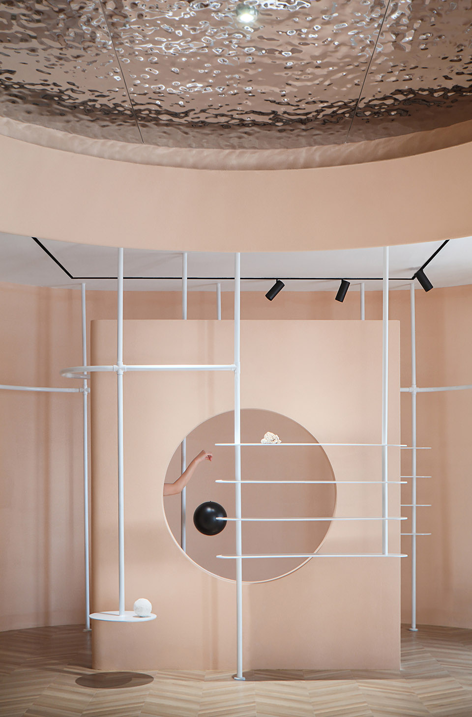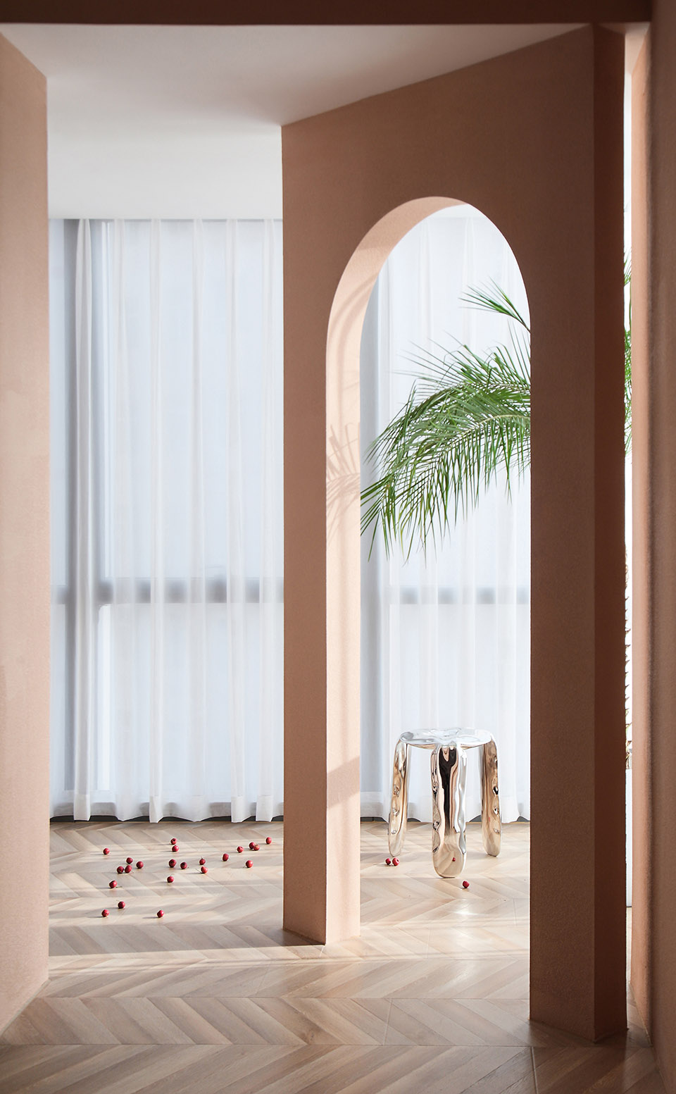 试穿婚纱是感受幸福的关键,我们希望在顾客踏入这个空间时即可感知到它的氛围。我们用圆润、有机型态的弧形单品,提升空间的温暖和包容力。