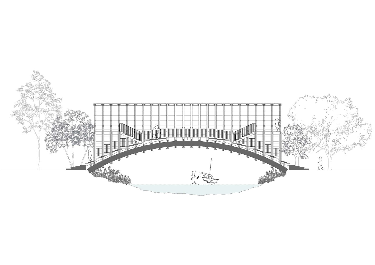 小截面的次结构体系,不仅使得廊空间内部有很好的结构构造感,也让穿行在桥底的游船乘客于桥下观看桥底也颇有建造匠艺细节的视觉体验。